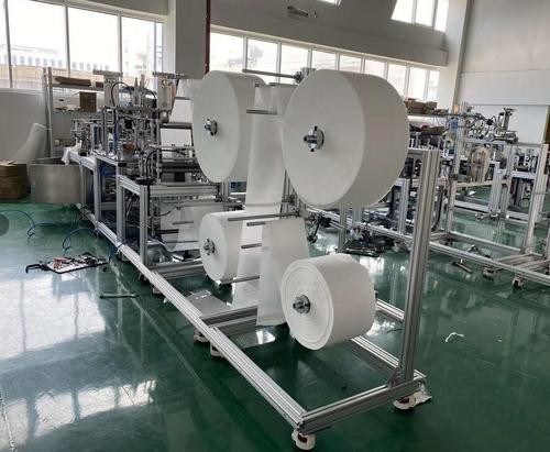 Ο εξοπλισμός χρησιμοποιείται για να παραγάγει μια μίας χρήσης μη υφανθείσα μάσκα. Ο εξοπλισμός αποτελείται κυρίως από τη σίτιση, τη διαμόρφωση, την ένωση, την κοπή, τη σύνδεση και τη μεταφορά, την πολική συγκόλληση αυτιών, την απαλοιφή και τη συσσώρευση, κ.λπ. Εκτός από τη χειρωνακτική σίτιση, ολόκληρη η διαδικασία από την πρώτη σίτιση ύλης στην τέμνουσα συσσώρευση ολοκληρωμένων προϊόντων ακρών εισαγωγής πλευρών μύτης είναι πλήρως αυτόματη λειτουργία. Η μηχανή μπορεί να συνδυαστεί από έναν οξυγονοκολλητή αυτιών δύο-πόλων τραβήγματος τραβήγματος ένας ή ένας για να καλύψει τις διαφορετικές απαιτήσεις ικανότητας παραγωγής.